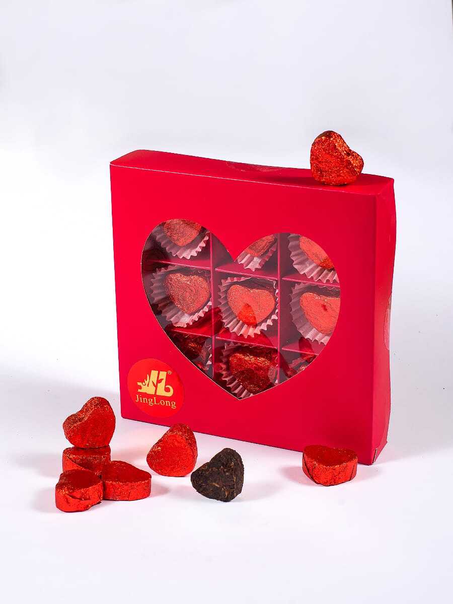 0214кРозница Чай прессованный черный Пуэр Шу классический (мини сердце) 9 шт. + коробка сердце