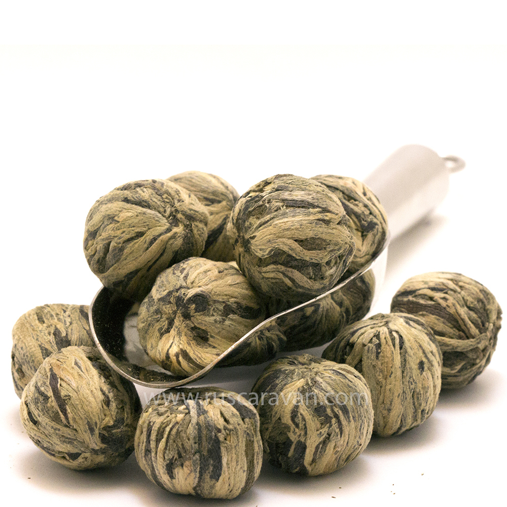 РЕКОМЕНДАЦИЯ: Чай при заваривании очень эффектно открывается, им лучше всего любоваться в стеклянной посуде, поэтому на один шарик связанного чая весом примерно 9-10 грамм, можно смело брать чайник на 1 литр. Важно в такой чайном действие заваривать водой в 75-80 градусов, чтобы не испортить вкус если вода будет горячее.
