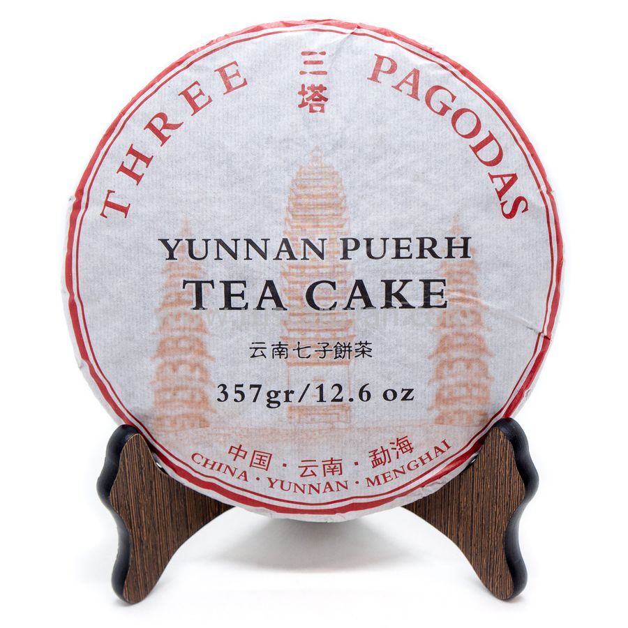 Прессованный блин шу пуэра линейки «Саньта» (Три Пагоды) произведен чайным заводом Цзинлун. Ранее «Три Пагоды» было отдельным производством, на сегодняшний день он перешел в разряд популярный пуэрных брендов, которые принадлежат Цзинлуну. Имеет изображение 3 башен (буддийских па́год) – символ города Дали в Юньнани, где началась история бренда. Относится к сегменту экономичных, но качественных чаев, подходит для ежедневного употребления. СЫРЬЕ: Блин «Саньта» состоит из линьцанского сырья 7 сорта, предварительно вылежанного в течение года. Иногда попадаются чайные почки. Имеет сильную ферментацию и высокий уровень кофеина, поэтому обладает мощным вкусом и выраженным тонизирующим эффектом.