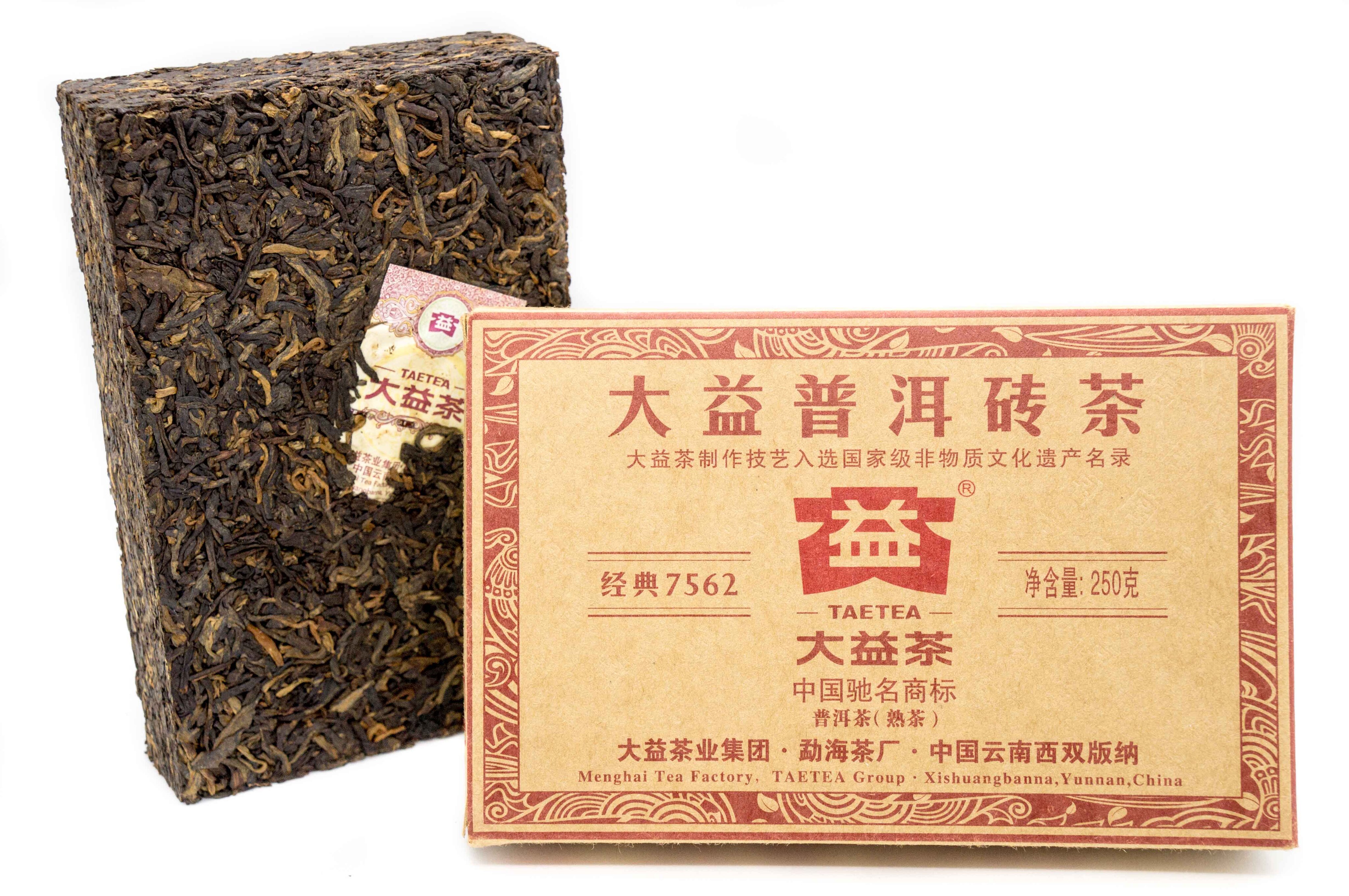 Шу пуэр 7562 марки «Даи» (Великая польза) Мэнхайского чайного завода в форме кирпича отнюдь не нуждается в представлении, классический чайный продукт от знаменитейшего бренда. Рецепт купажа был создан в 1975 году, 6-й сорт мэнхайского пуэра слабой ферментации. Подробнее состав кирпича 7562 чайным заводом не раскрывается. «Даи 7562», что продается у нас, урожая 2017 года, что придает намного большую историческую и вкусовую ценность этому шу пуэру.