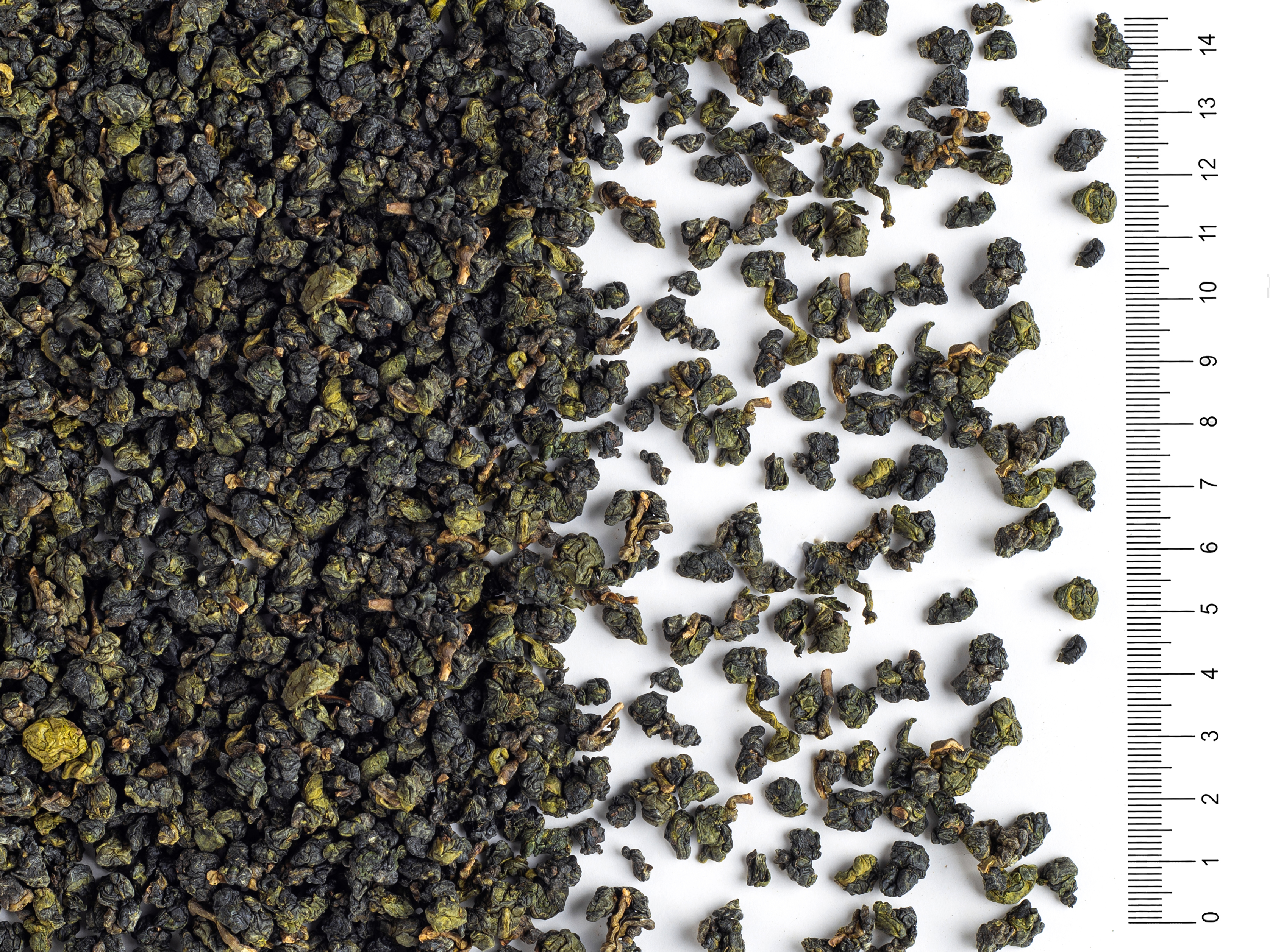 СЫРЬЕ: Светлый улун сферической скрутки. Раскрывается в плотный черенок с 2-3 листиками.