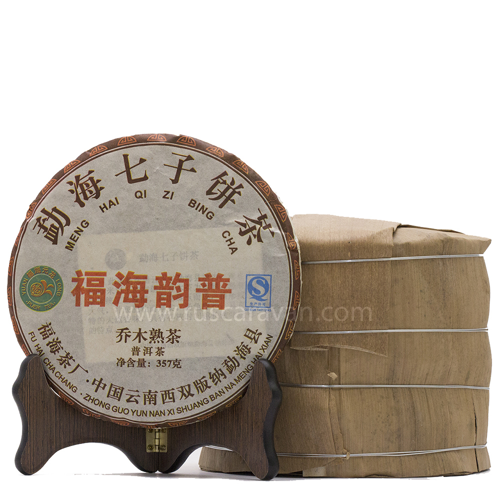 СЫРЬЕ: В «Фухай Юньпу» использовалось моносортовой мэнхайский чай 5-го сорта урожая 2013 года. Степень ферментации средняя. Туда также было добавлено существенное количество типсов (золотых почек), что и украсило продукт, и усилило его вкусовые параметры.