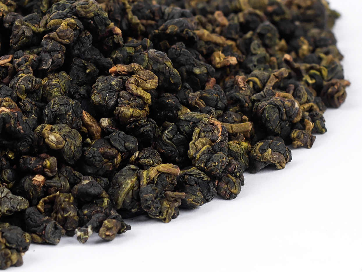 СЫРЬЕ: Плотно скрученные тёмно-зелёные листья с бирюзовым отливом раскрываются в веточку с несколькими листиками.