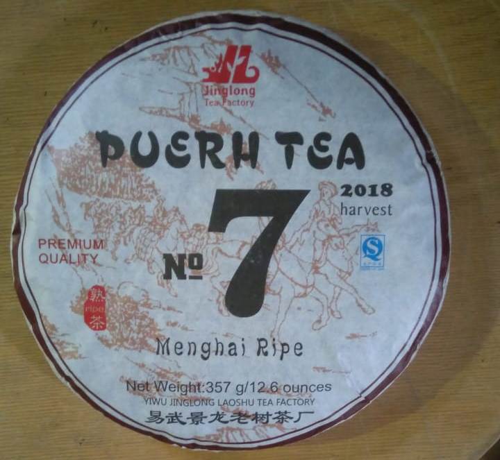 Один из неизменных хитов продаж чайного завода Цзинлун, начиная с 2012 года, когда была выпущена серия прессованных пуэров с различной сортностью. Название блина шу пуэра происходит по сорту чая – то есть это 7-й сорт бленда мэнхайского и линьцанского сырья годичного вылеживания, ферментированного в уезде Мэнхай. Сама серия состоит из 4 блинов пуэра разного размера и разной сортности от 7 до 1 сорта. Серия была нацелена на западную аудиторию, и с успехом продается в разных странах почти 10 лет. СЫРЬЕ: Степень ферментации – средняя, отборный, крупный лист, темно-коричневый, ближе к черному. Запрессовка пуэра – средняя, поэтому он хорошо поддается разламыванию. Относится к чаям со средним содержанием кофеина – около 250 мг, и на полдня заряжает энергией.