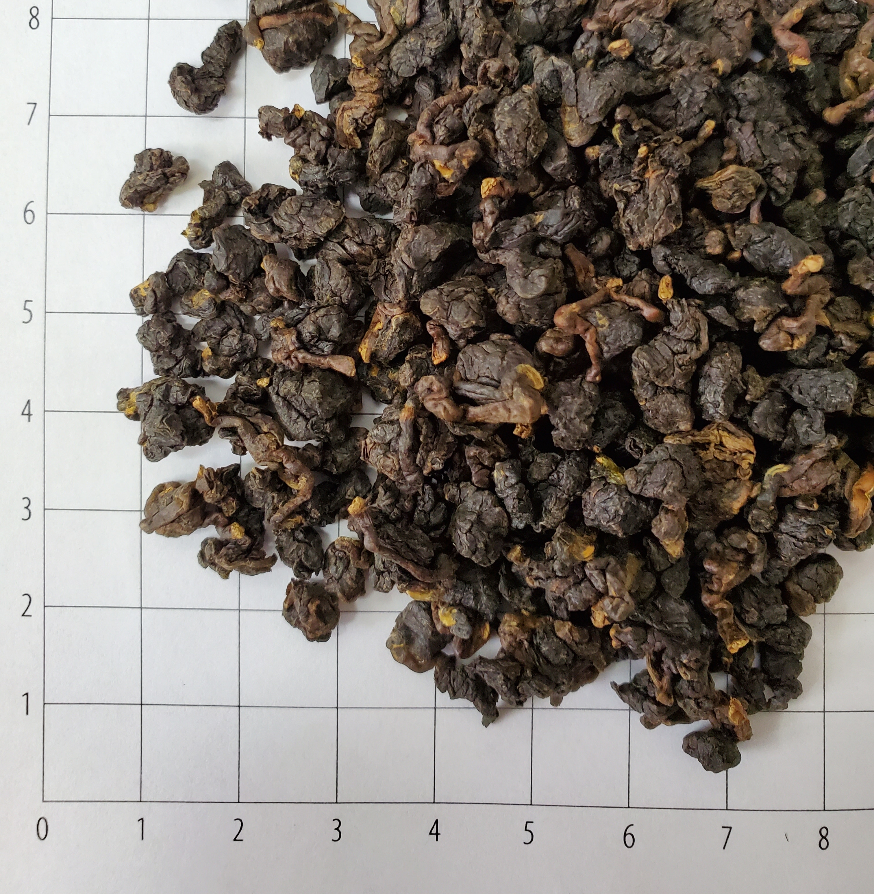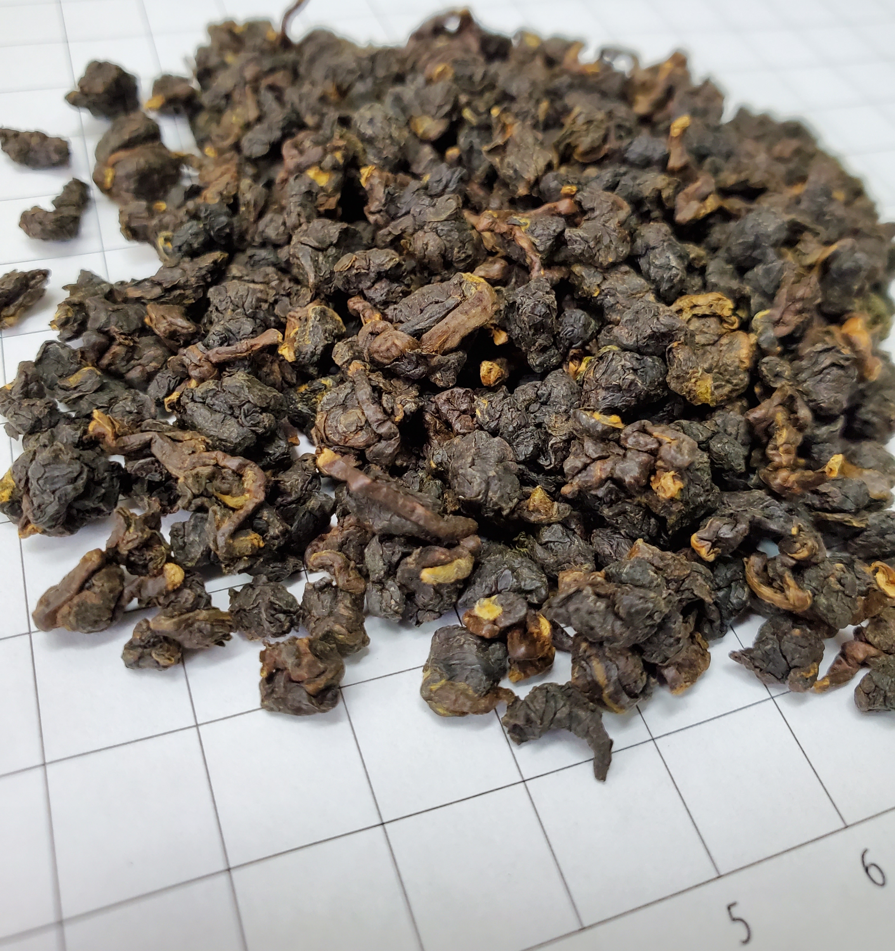 СЫРЬЕ: Используется лист сорта «Улун», сферическая скрутка, сильной ферментации в азоте. Лист темно-коричневый, среднего размера, со светло-коричневыми черешками.
