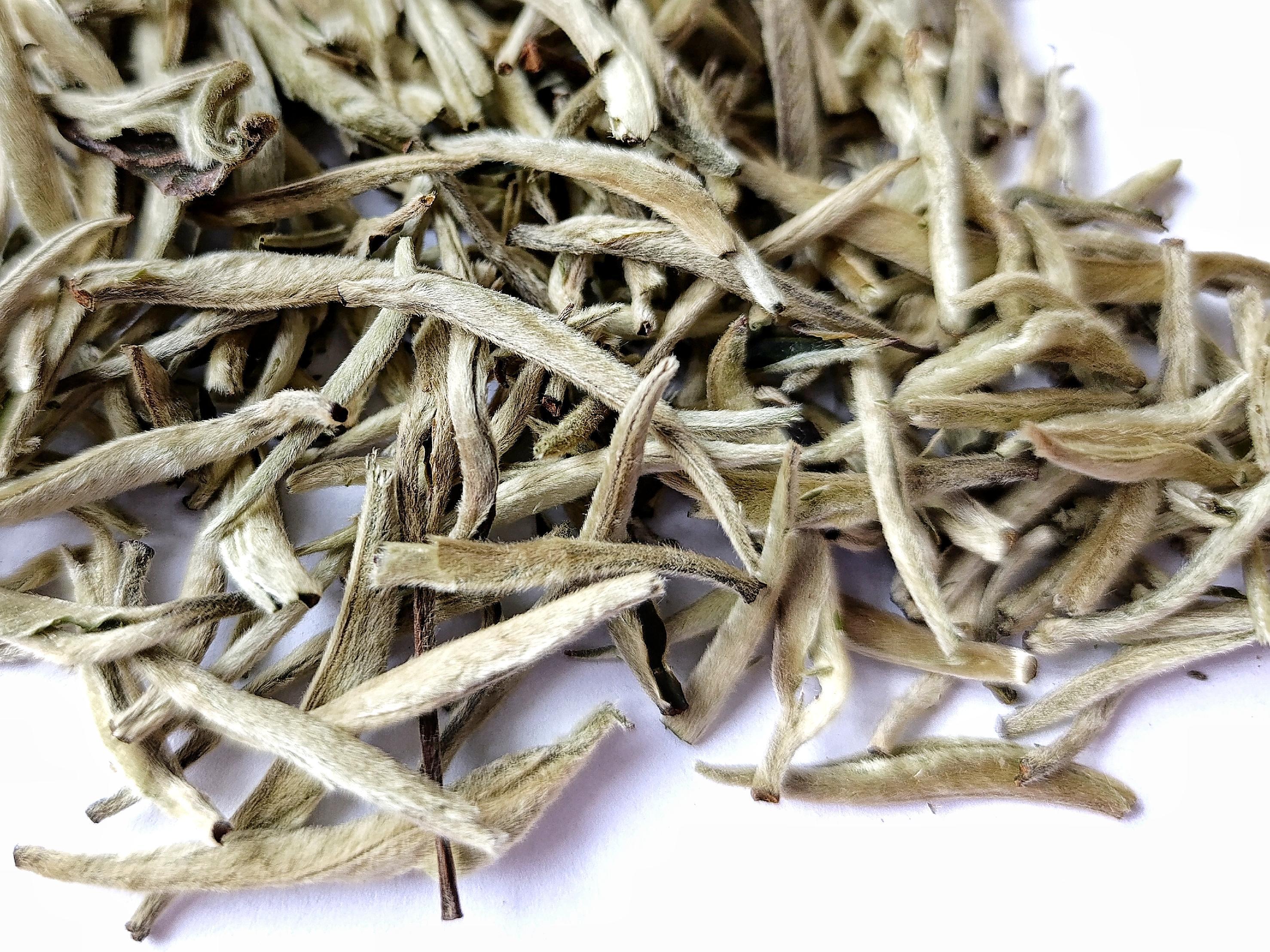 СЫРЬЕ: Чайные почки сортов "Фудин Дабай" и "Юнкан №10", собранные вручную с марта по октябрь-ноябрь. Строгий отбор: пухлые, покрытые серебристыми ворсинками почки.