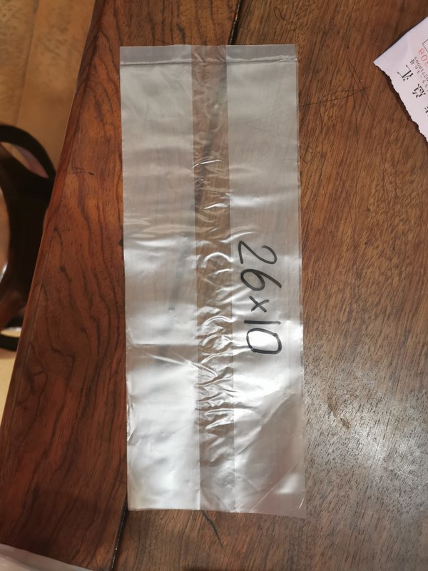 Тонкий однослойный полипропилен, удобен для дальнейшей упаковки чая в банку. Высота 28см, ширина 10см.