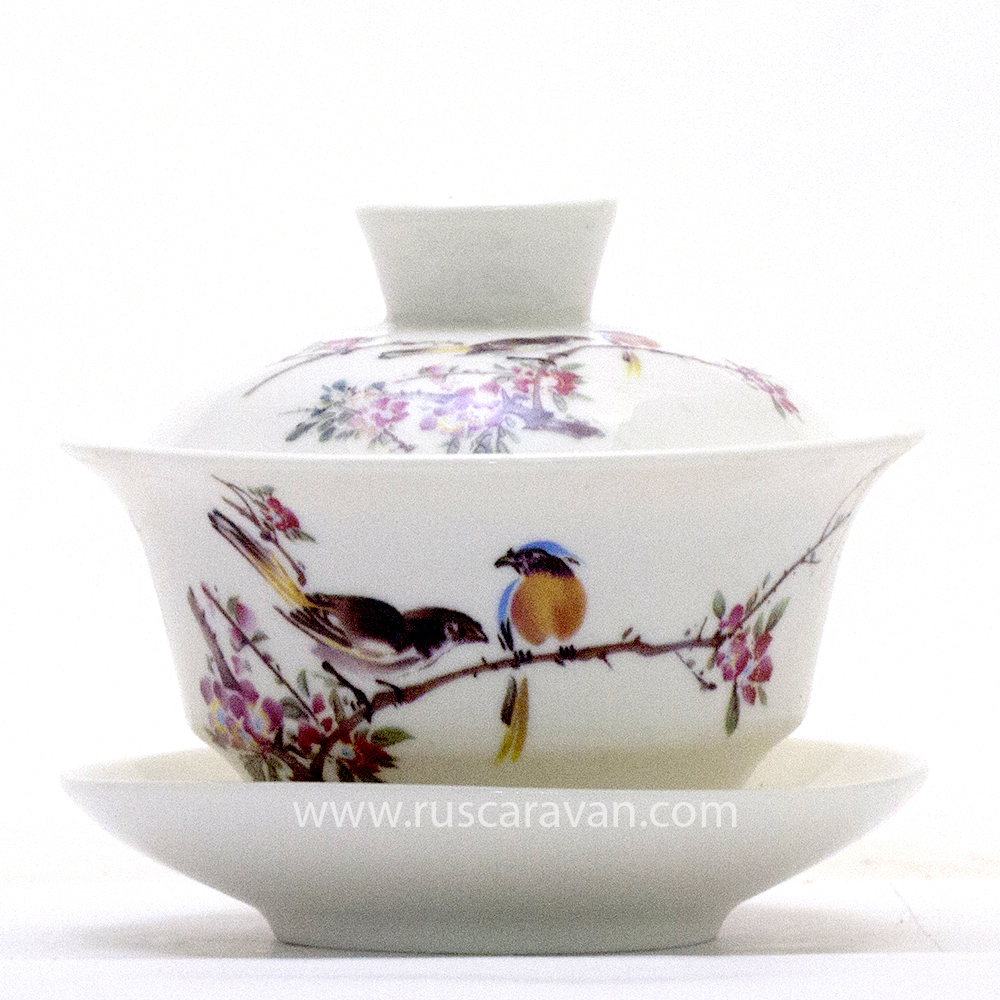 183175 Гайвань " Птицы в весеннем саду" (фарфор, 70 мл)