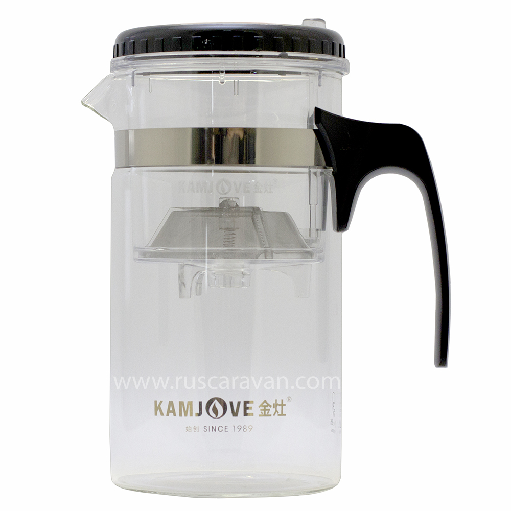18371 Чайник Kamjove "Изипот" б/носика, съемная крышка, h=19см, d=10см, 1000мл, стекло/пластик