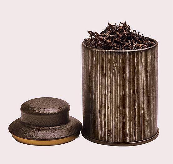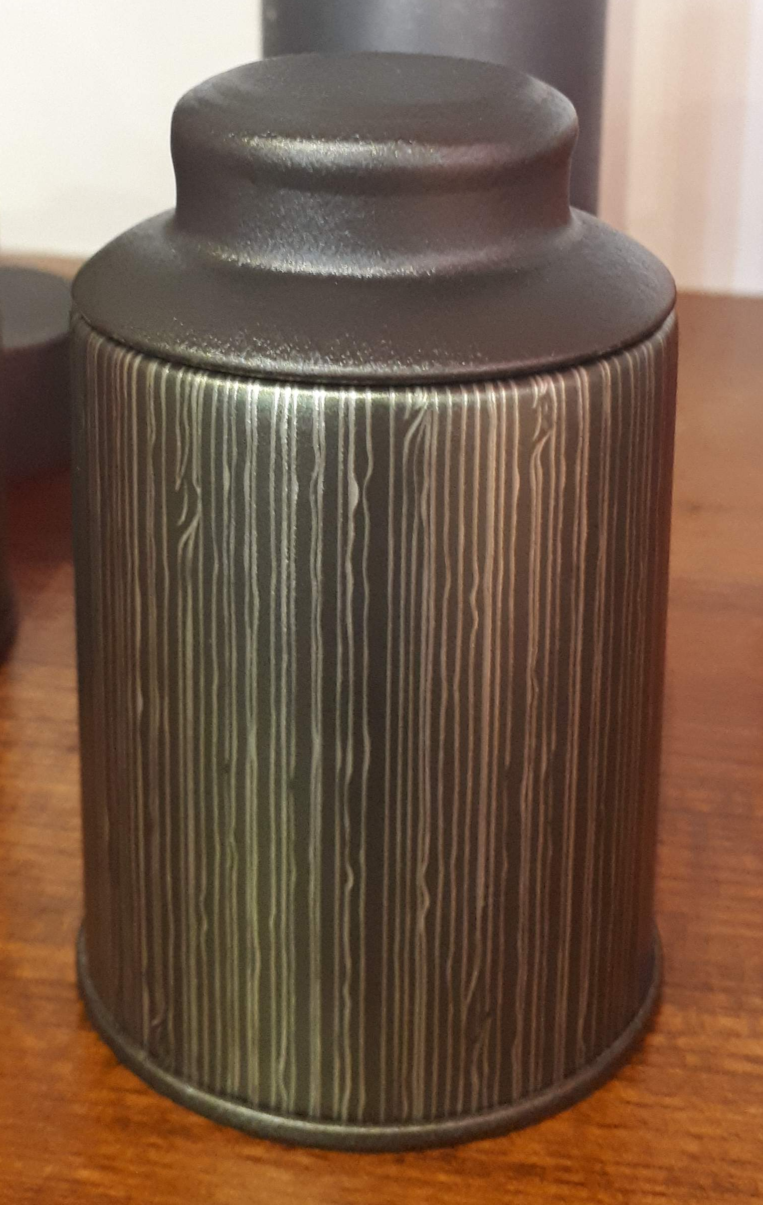 202096 Банка круглая высота 80, диаметр 50, жесть. Цвет коричневый, узор "Золотой Дождь"