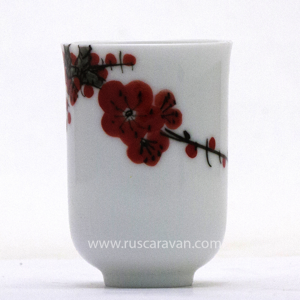 205007-1 Чайная пара "Птица на красном цветке", фарфор (стаканчик)