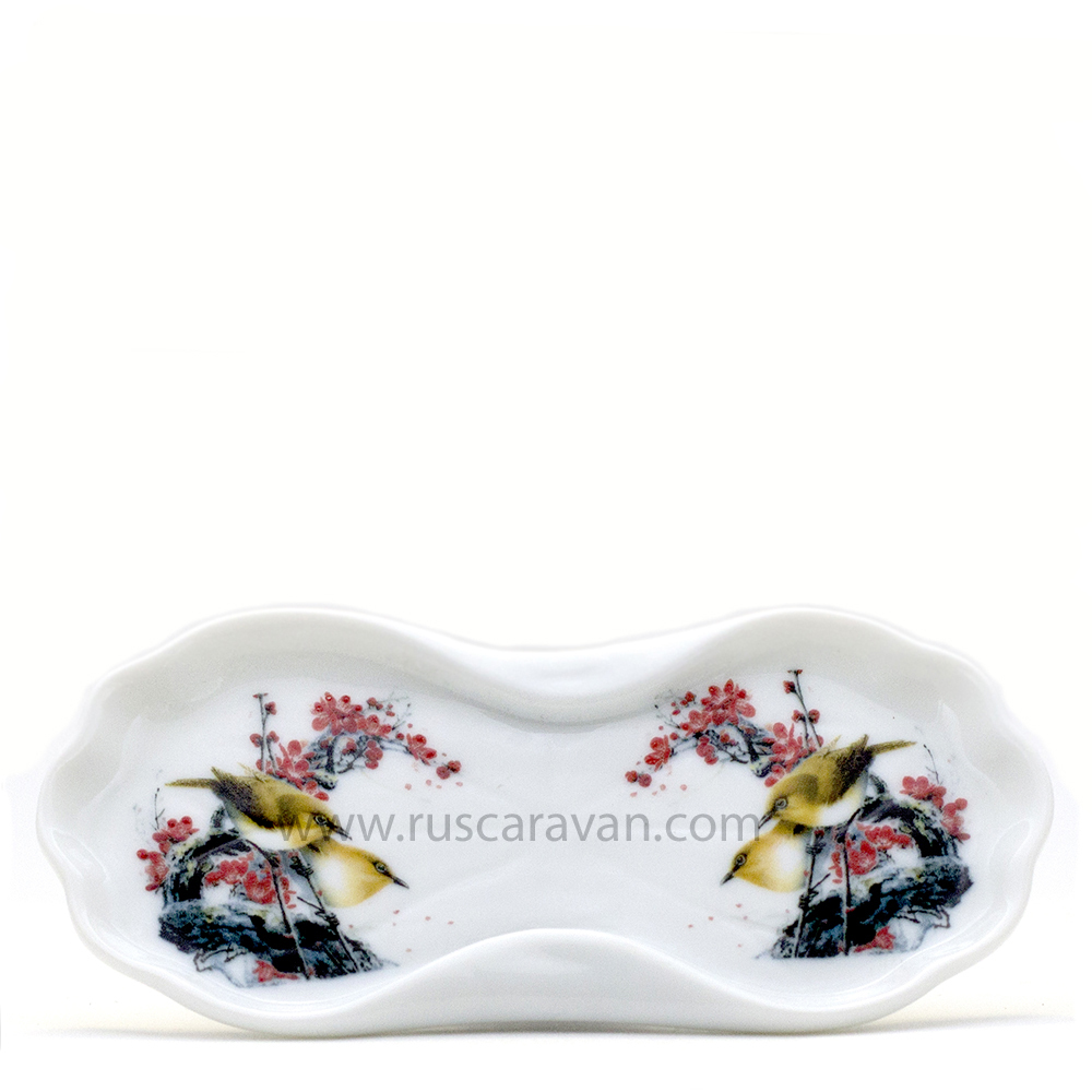 20602-2 Подставка для чайной пары "Птичка на ветке Сакуры", фарфор
