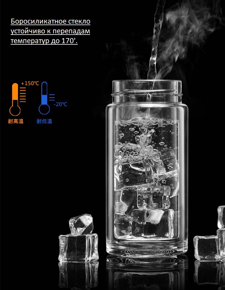 Боросиликатное стекло устойчиво к перепадам температур до 170'. Приготовьте согревающий горячий чай зимой или освежающий холодный – летом.