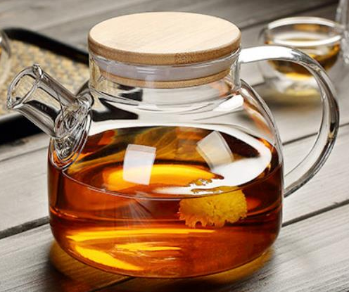 237028 Чайник 1000 мл, стекло (боросиликатное, огнеупорное), с пружинным ситом. Деревянная крышка