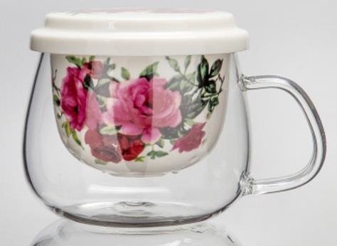 239041 Кружка с заварочной колбой "Розы", стекло
