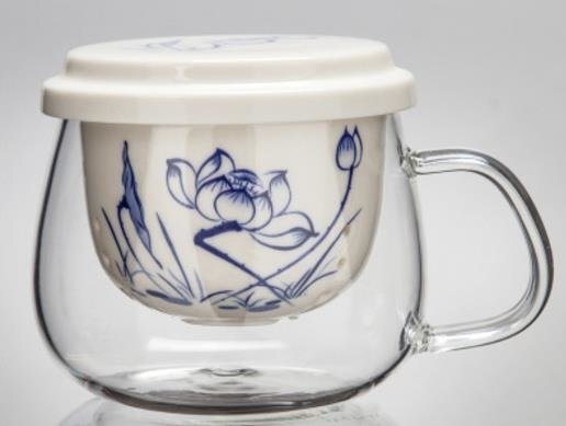 239042 Кружка с заварочной колбой "Синий лотос", стекло