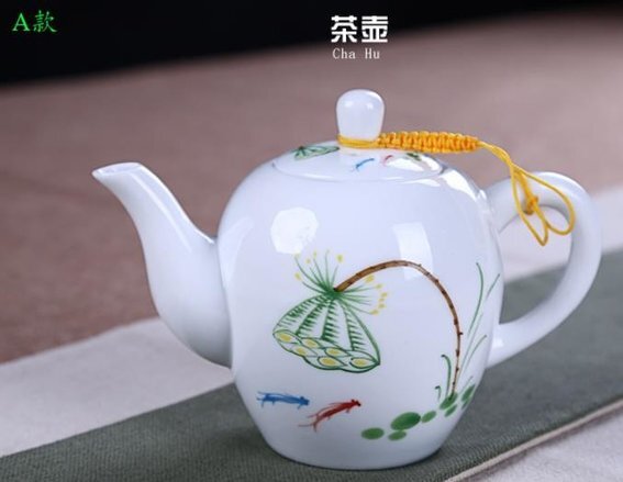 242011 Чайник "Лотос и рыбка", фарфор, объем 130мл. Диаметр 7,5см, высота 10см