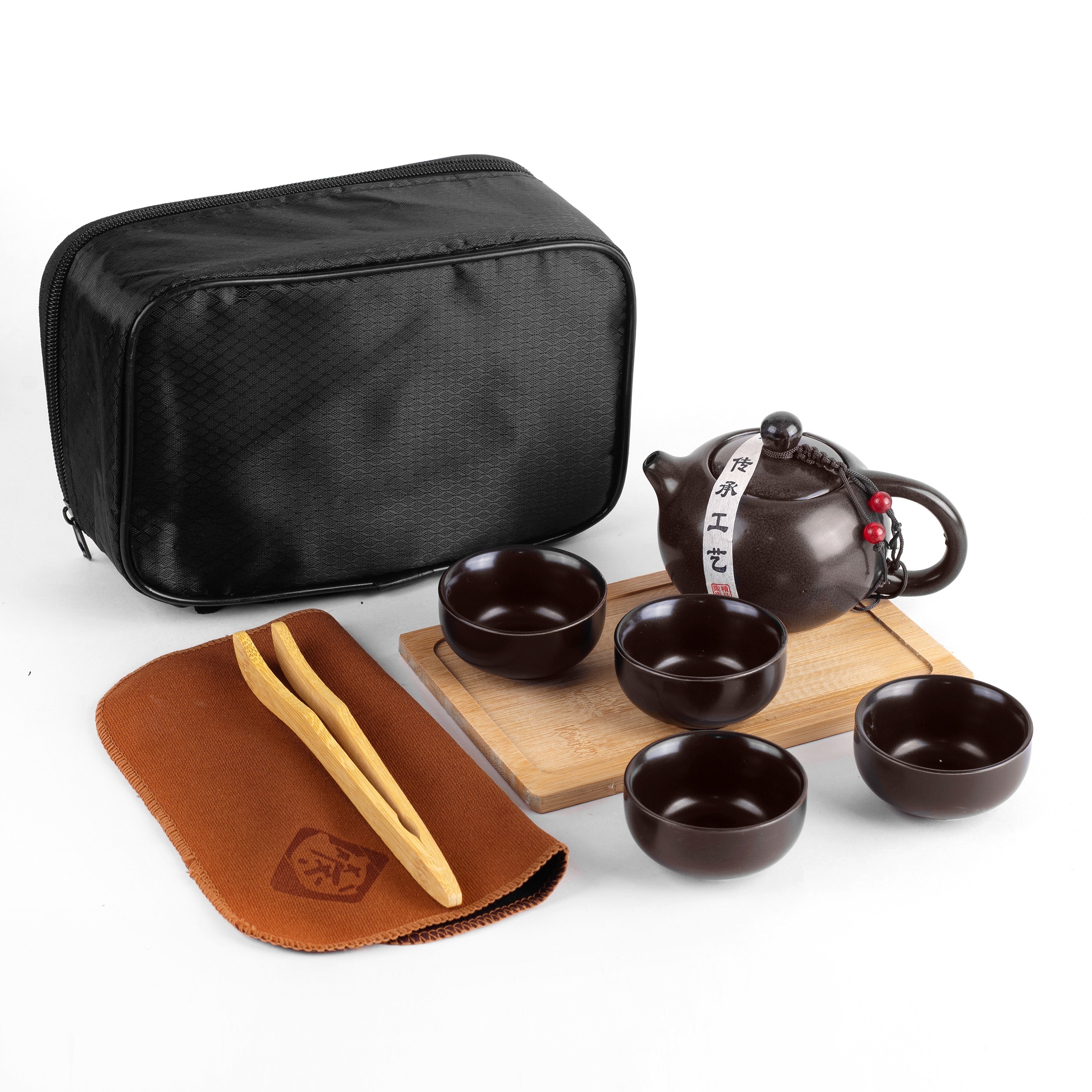 - Ударопрочный чехол – в нём ваш любимый чайник и пиалы будут в безопасности. Внутри чехла предусмотрен специальный кармашек для запаса чая к вашей посуде.