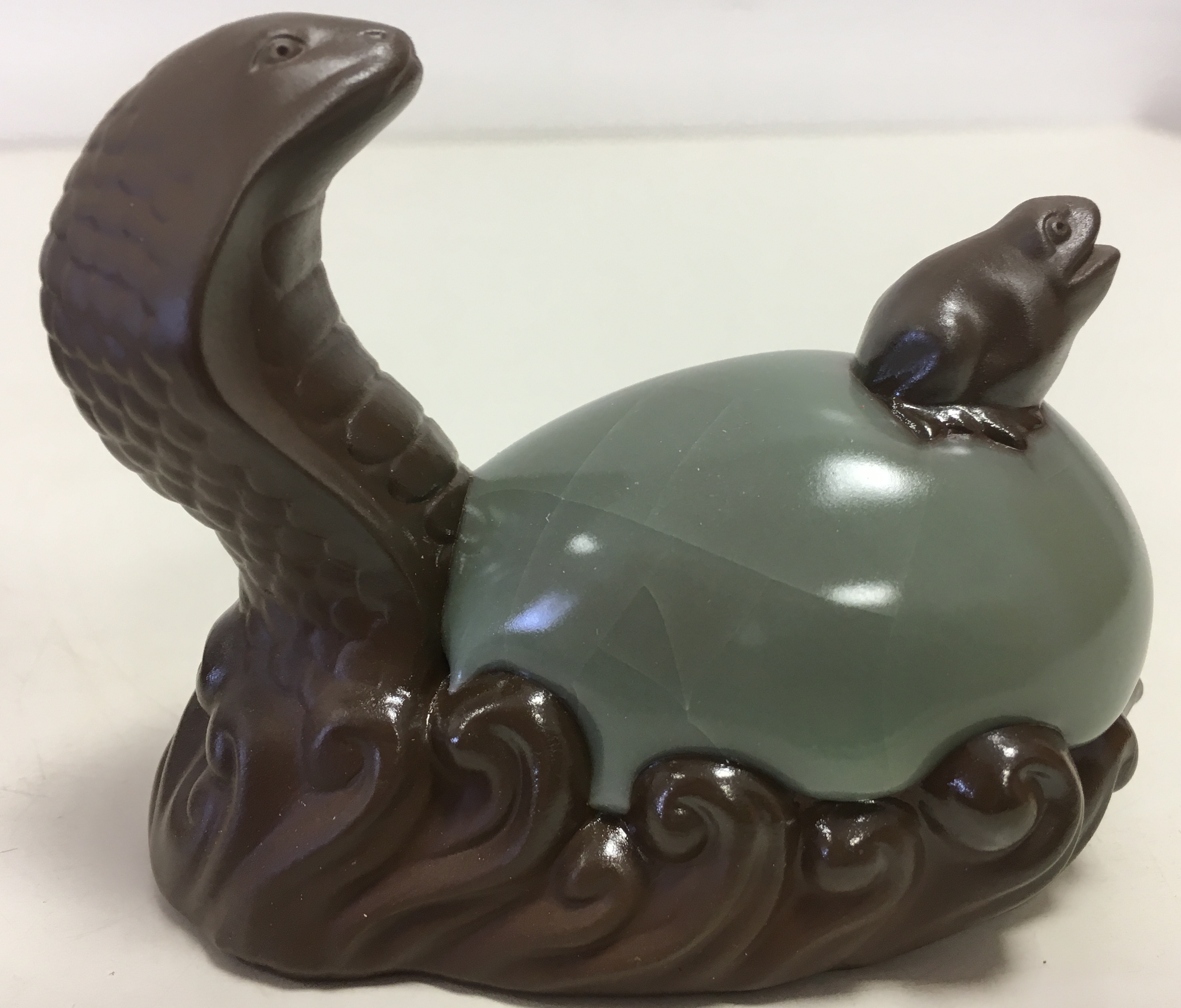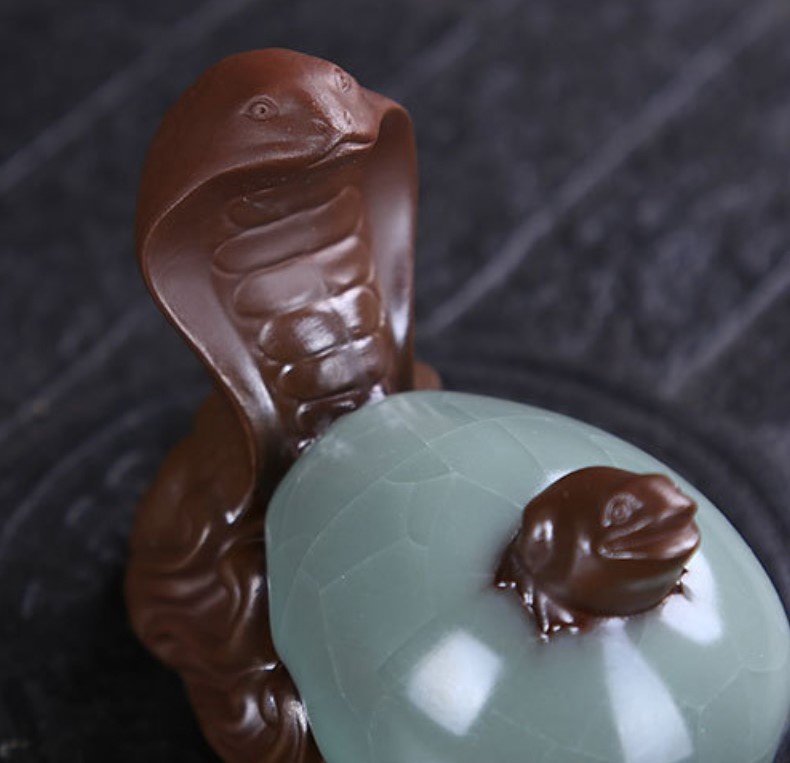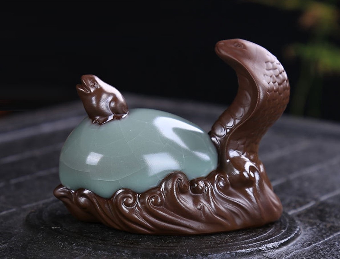 Фигурка на чабань (Статуэтка для чайной церемонии) - Змея и жаба Материал: глина с глазурью (селадон). Размер 5см х 9см