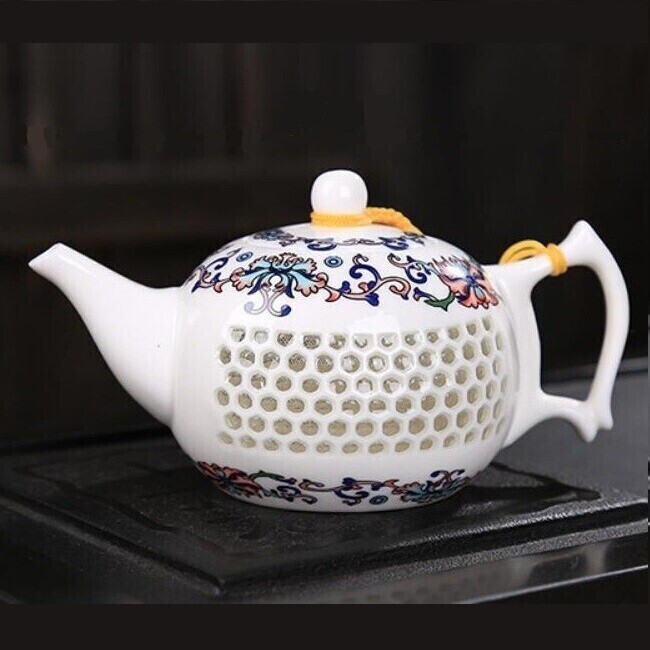 «Рисовое зерно» - общая категория фарфора, есть несколько основных разновидностей рисунка узоров. Чайник "Улей" выполнен в виде медовых сот, и, при наполнении его чаем, вы можете наслаждаться цветом напитка.