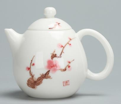Чайник популярной формы Лун Дань (Яйцо Дракона) расписан вручную — детали рисунка могут оличаться один от другого и нет двух абсолютно одинаковых. Фарфор "Бараний Жир" — Тонкий глазурованный фарфор династии Мин, печи Дэхуа. Вид фарфора Янчжи Юйцы «Бараний жир» или «Белая яшма». Ветка сакуры — как символ начала любви, перемен и счастья.