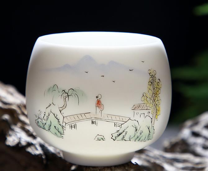 242099.9 Пиала МАТОВЫЙ НЕФРИТ "Мостик" ручная роспись, фарфор белый