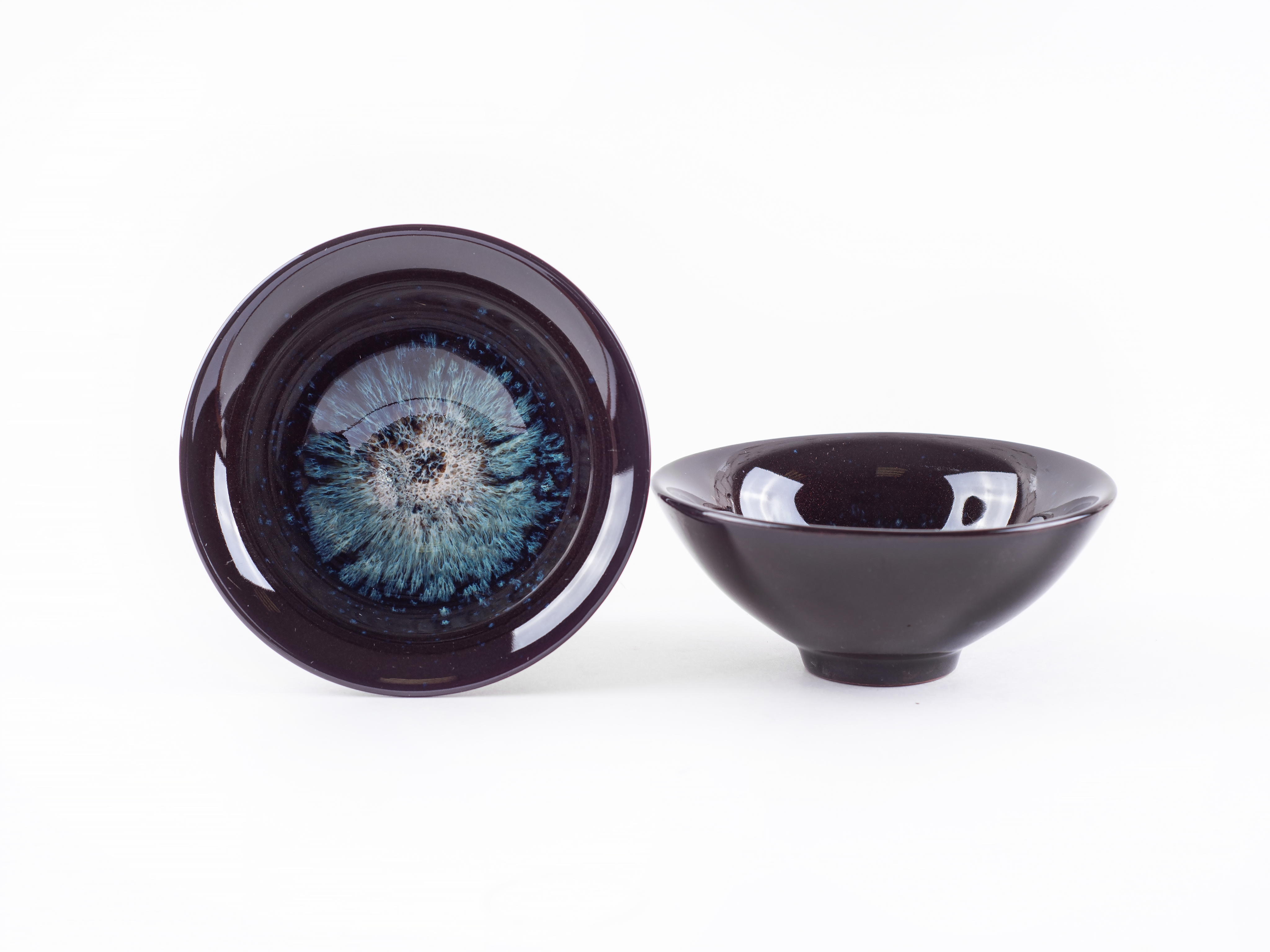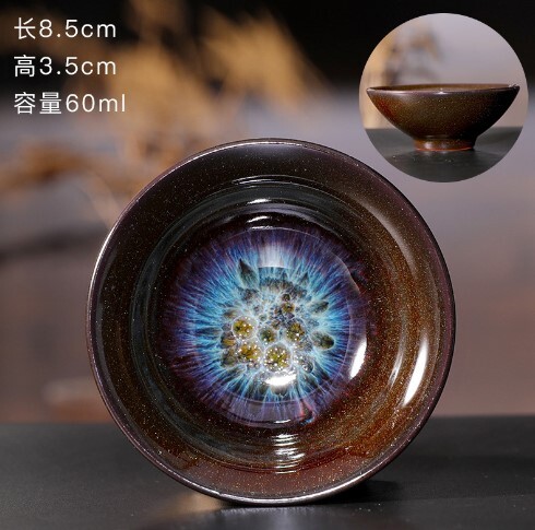 В глазурь добавлена золотая пыль и пиала эффектно переливается на свету.
