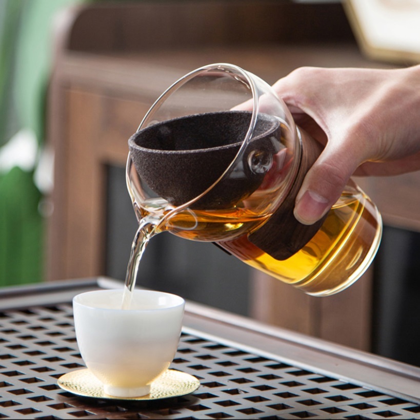 Боросиликатное стекло ровное и прозрачное, поэтому наливать туда чай или просто держать в руках - одно удовольствие. Несмотря на ультрасовременную форму, сливник отлично смотрится как с традиционными чайниками из исинской глины, так и со стеклянными или фарфоровыми чайниками."