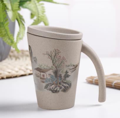 249013.3 Кружка ТЕРРАКОТОВАЯ "Деревня" с крышкой, h=13см, d=8,8см, 350мл, глина бежевый