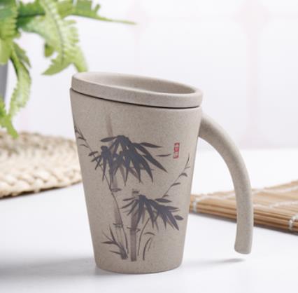 249013.4 Кружка ТЕРРАКОТОВАЯ "Бамбук" с крышкой, h=13см, d=8,8см, 350мл, глина бежевый