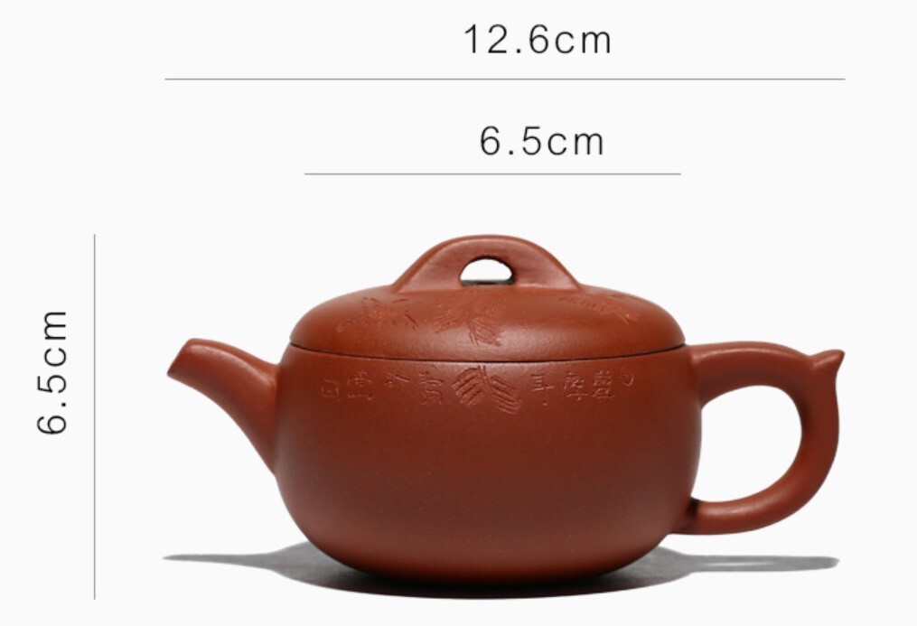 Чайник изготовлен из красной глины, имеет плавные линии и необычную форму, отчасти напоминающую популярный «Ханьский Мост». Крышка плотно притерта, слив быстрый и ровный, горлышко достаточно широкое для любыз крупнолистовых сортов чая.