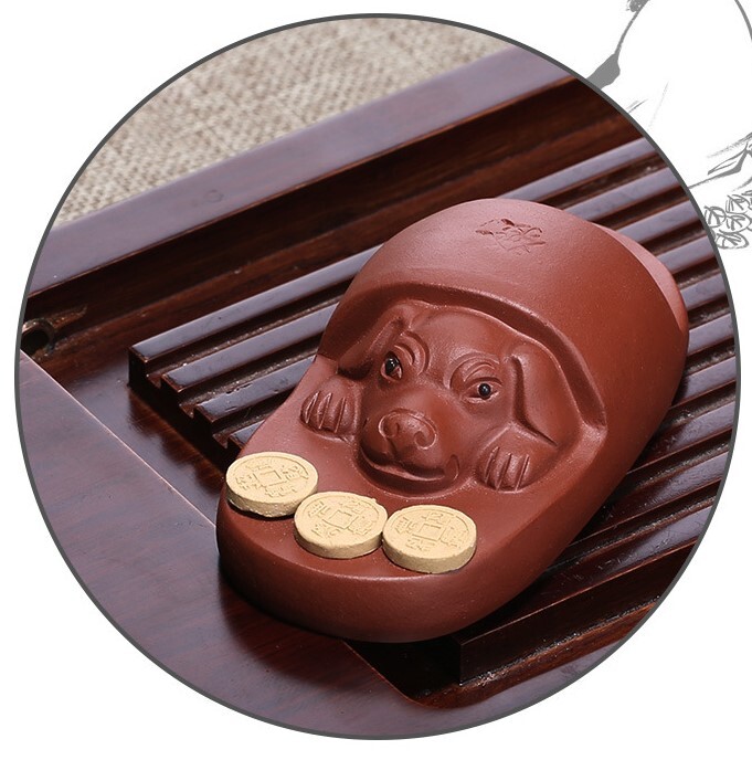 "Чайная фигурка на чабань (Статуэтка для чайной церемонии) ""Щенок с монетами"".