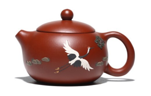 250059 Чайник ИСИН "Сосна и журавль"  В ПОДАР КОРОБКЕ 180мл, глина, красный