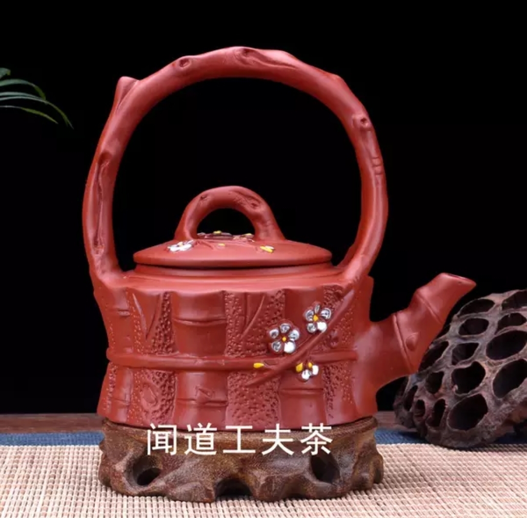 252007 Чайник "Сакура и бамбук" 270мл, высота 14, диаметр 10, глина. Цвет - красный