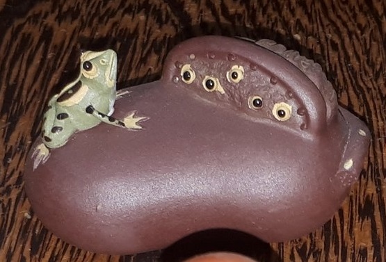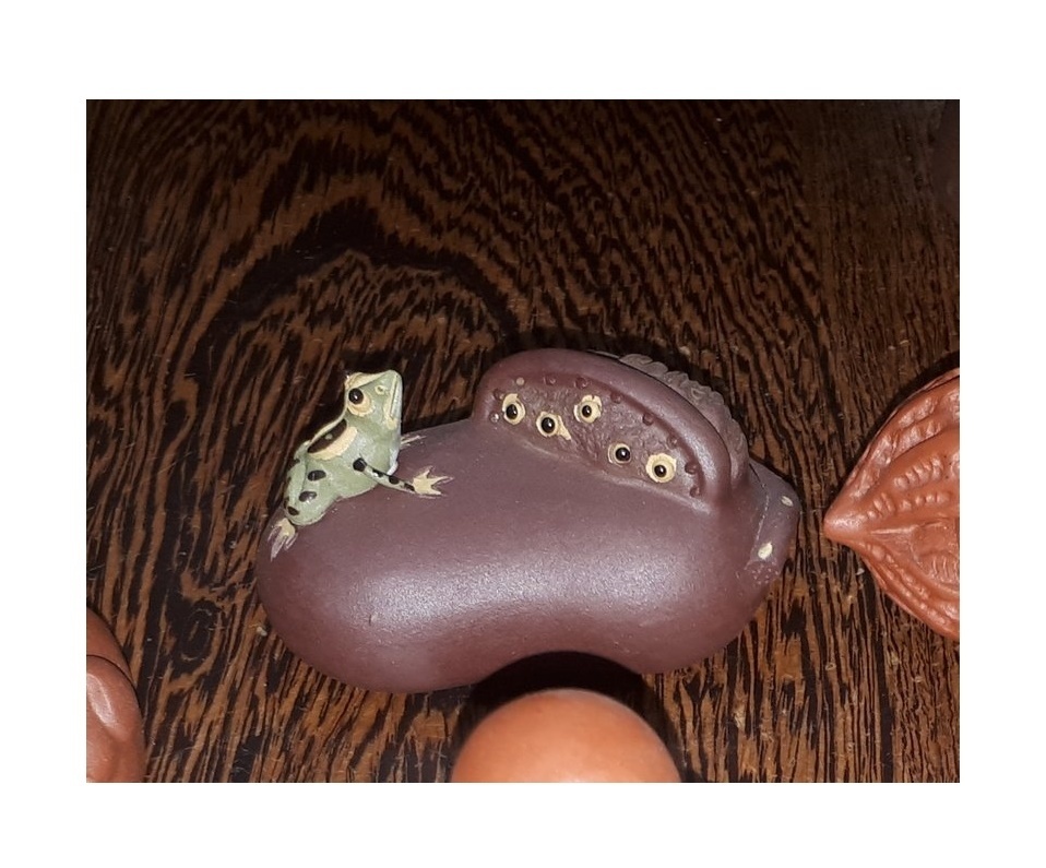 258014 Фигурка исинская глина "Лягушка с лотосом". Чайный аттракцион: пузыри