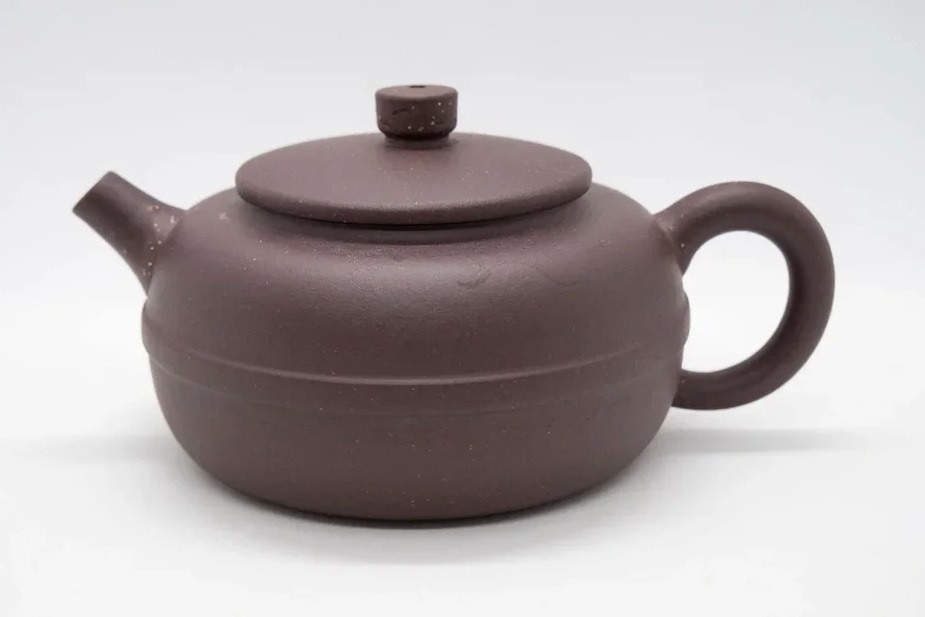 259029 Чайник ИСИН "Сянь Юань - Линия по кругу" 250мл, глина красный песок, слив в фрме полусферы