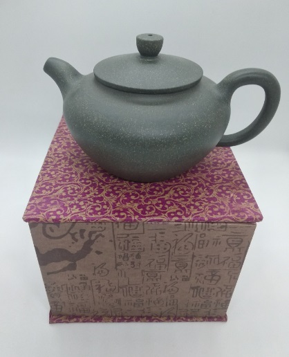 259036 Чайник ИСИН "Бянь Фу - Плоский живот" 280мл, глина зеленый, слив в форме полусферы