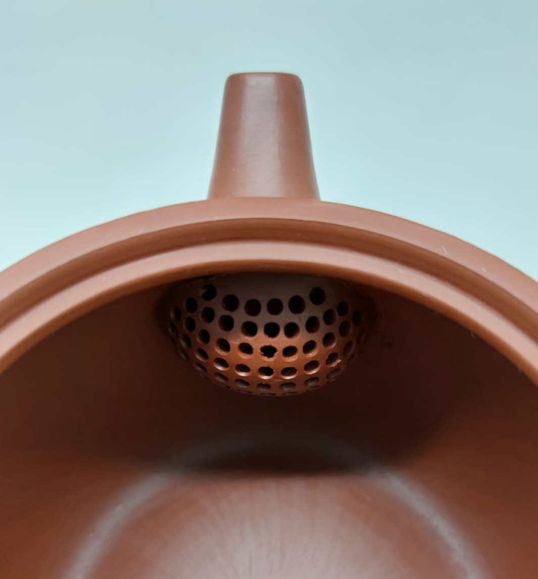 Носик чайника изнутри оформлен в виде камеры с отверстиями, которую иногда называют «груша» или «птичья клетка». Такой чайник имеет отличный быстрый слив даже при заваривании гунтинов или мелколистовых сортов чая.