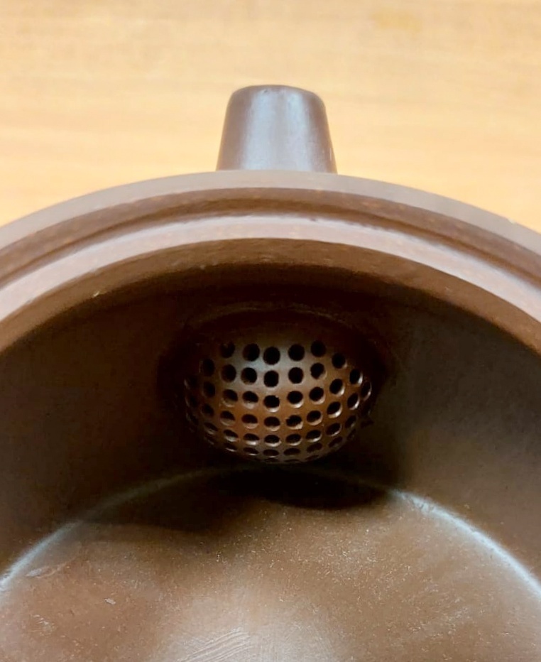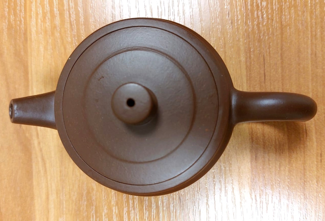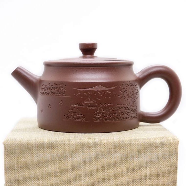 Форма «Дэ Чжун» создавалась мастером Шао Да Хэном (1796-1861 гг.с ) под впечатлением от «колокола добродетели» (ритуального инструмента) в первой половине XIX в., когда искусство керамики цзы ша достигло своего расцвета. Чайник выполнен в строгой манере. Невысокий цилиндрический корпус, устремленный вверх короткий носик, удобная, большая ручка и пуговка крышки – ничего лишнего.
