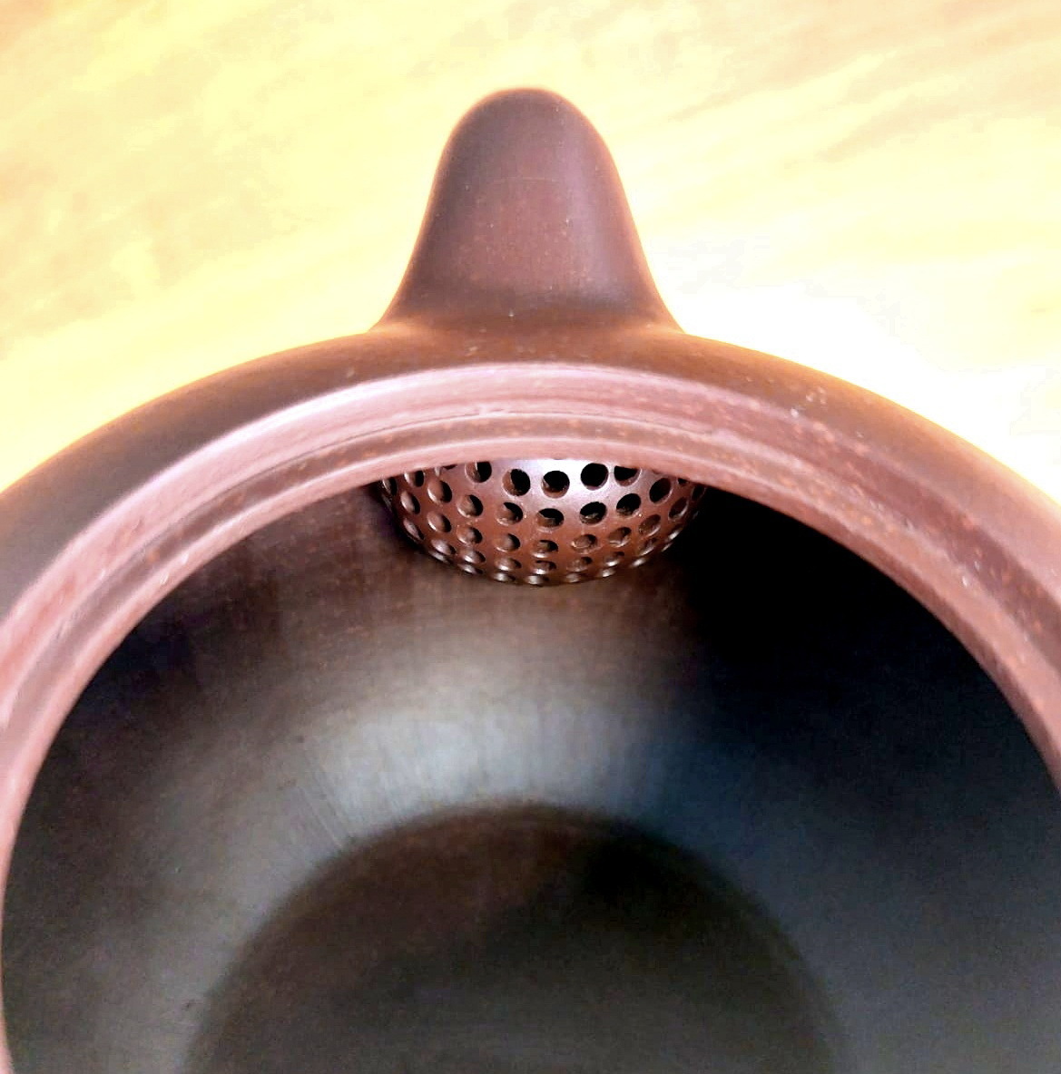 Широкая горловина удобна для крупнолистового чая и цельных кусков прессованного пуэра.