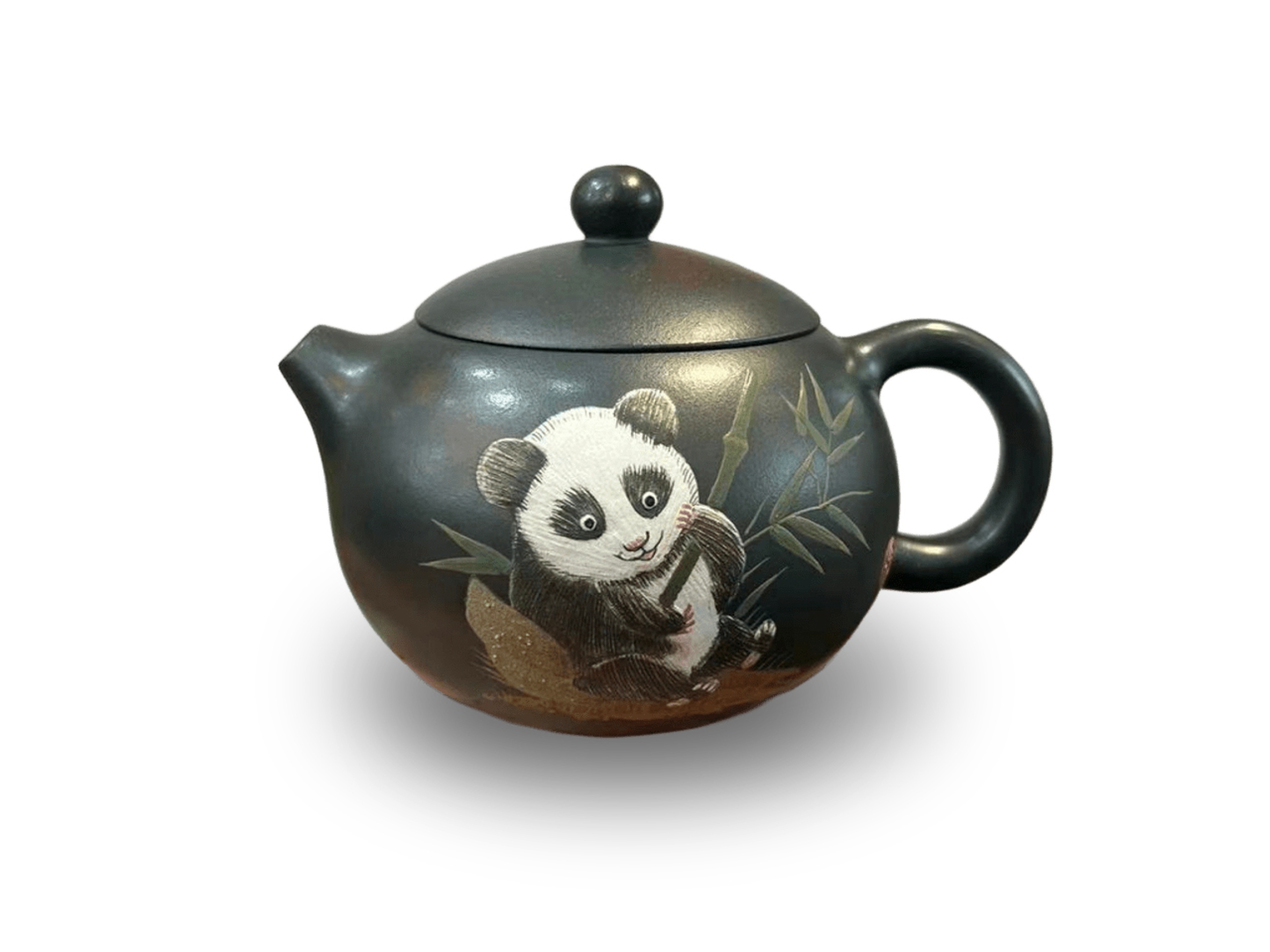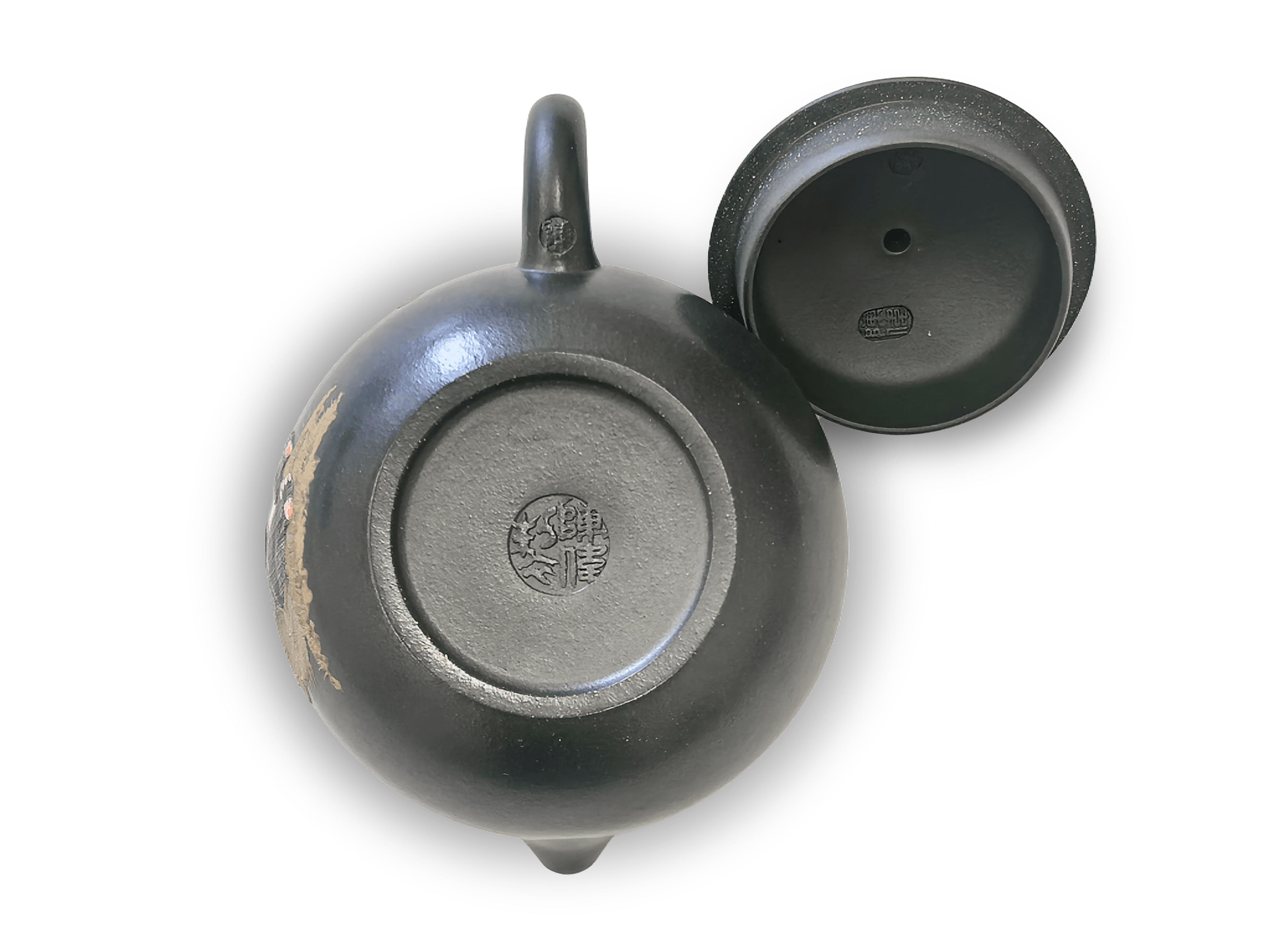 Исинская глина. Мастер керамики 陈伟 Чэнь Вэй. Длина 120мм, высота 80мм, диаметр горлышка 60мм. Слив "Птичья клетка" с 7 отверстиями. Ручная роспись. С водяным замком.