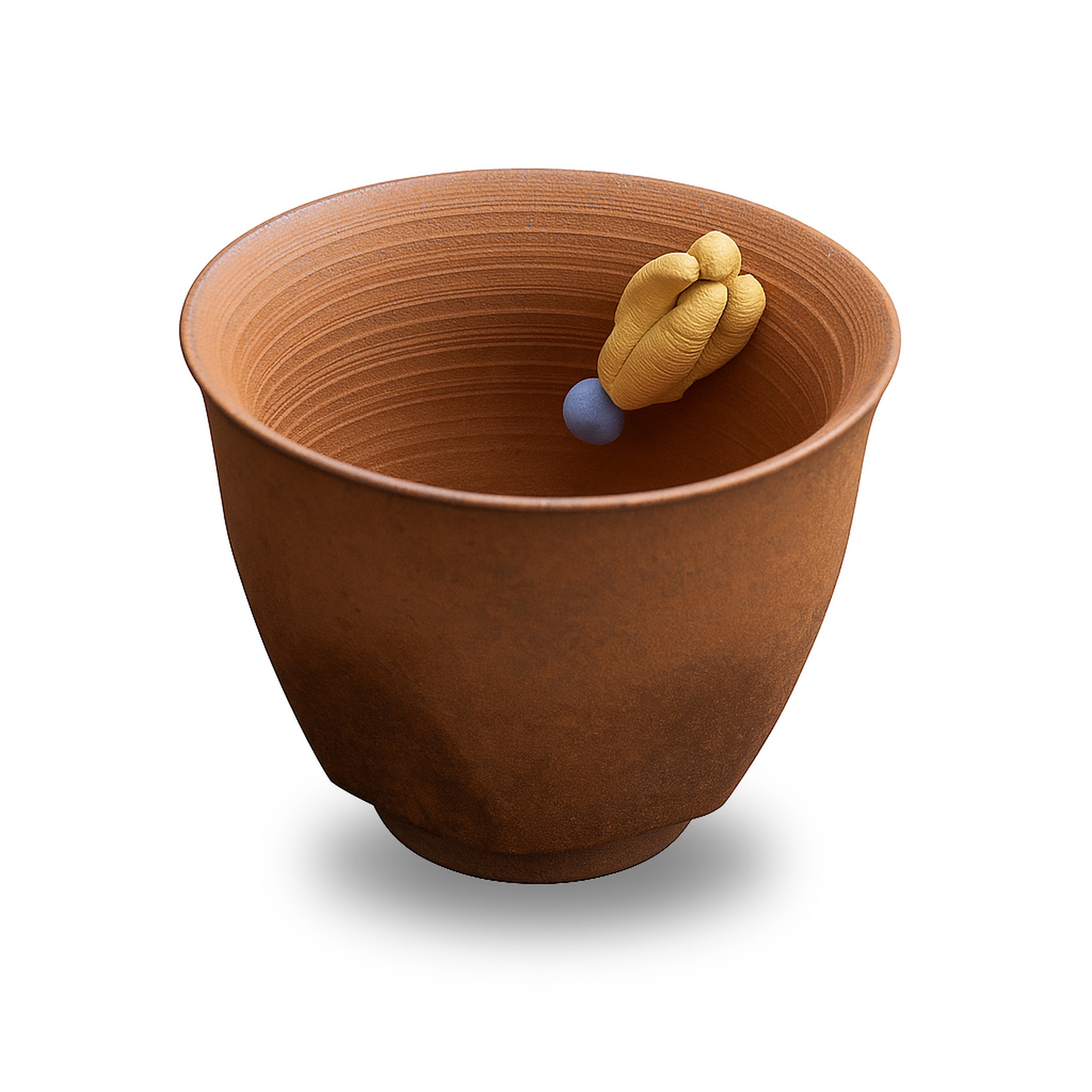 Пиала изготовлена из глины и древней горной руды с высоким содержанием железа и микроэлементов. Многоступенчатый обжиг при экстремальных температурах создает особую воздухопроницаемую структуру, которая естественным образом обогащает чай кислородом — это раскрывает аромат, смягчает вкус и делает послевкусие более глубоким.