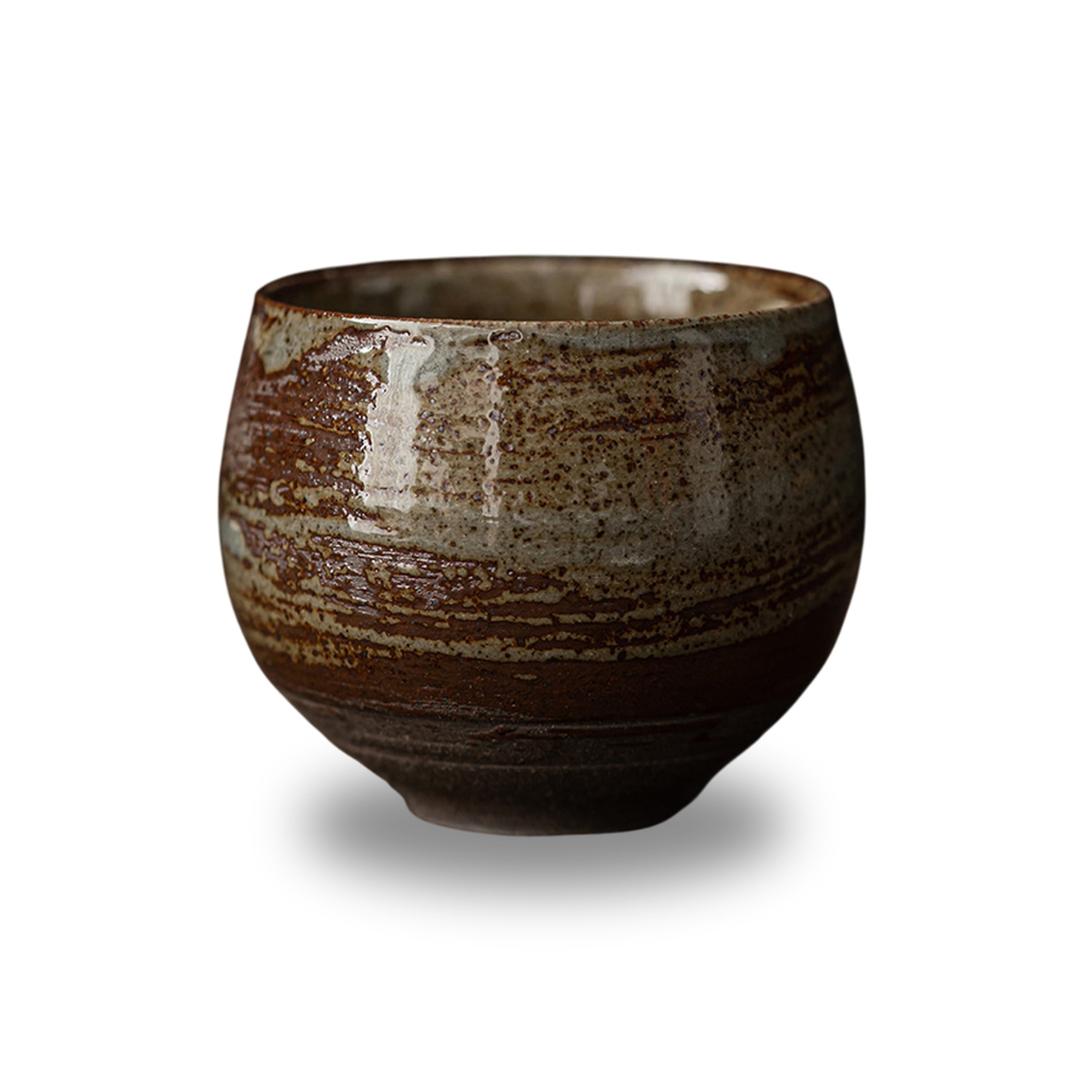 Ручная работа из отборной минеральной глины, обожжённой при высокой температуре, подарила этой пиале благородный коричневый оттенок с изящными светлыми прожилками-линиями. Глазурь лишь подчёркивает аутентичную фактуру, сохраняя первозданную красоту материала, а деликатные подтеки создают эффект "живого" сосуда.