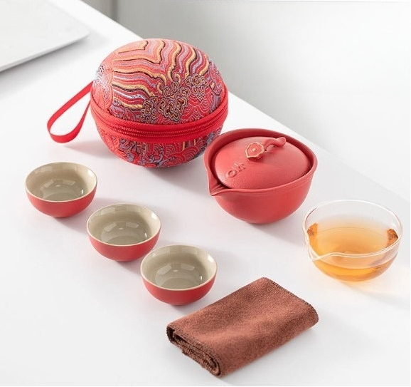СОСТАВ: гайвань 160мл, 3 пиалы по 45мл, сливник 150мл, полотенце, дорожный кейс.