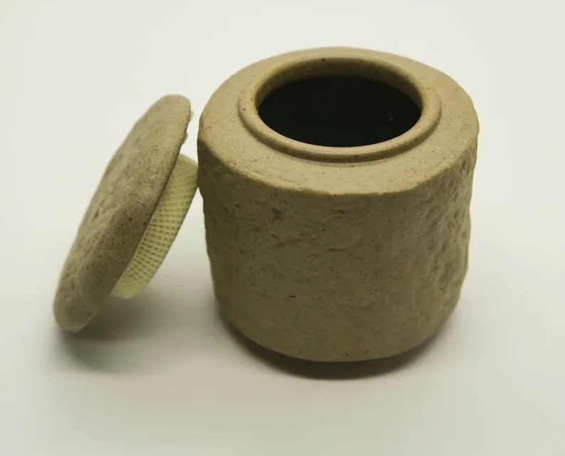 268001 Чайница серия-КРЕСТЬЯНСКАЯ 100 мл. Круглая, глина, цвет бежевый. диам 6 см х 6 см