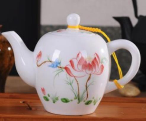 268017 Чайник ЦЗИНМЭЙ "Птички и лотос" роспись h=10,4см, l=14,2см, 250мл, фарфор белый
