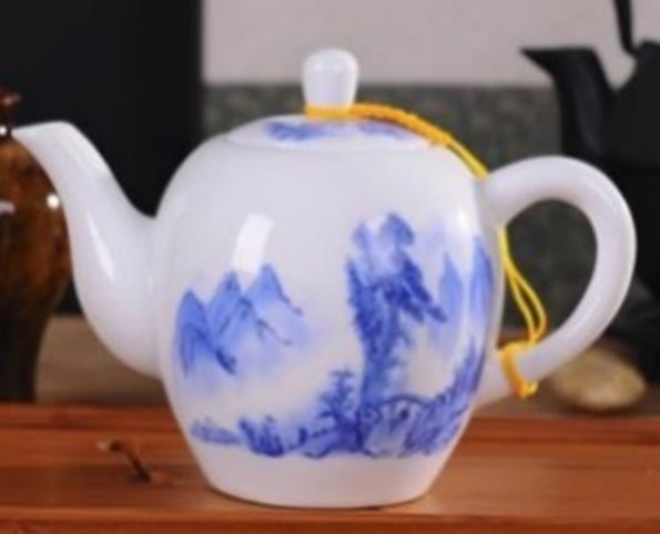 268017.2 Чайник ЦЗИНМЭЙ "Горы и реки" роспись h=10,4см, l=14,2см, 250мл, фарфор белый