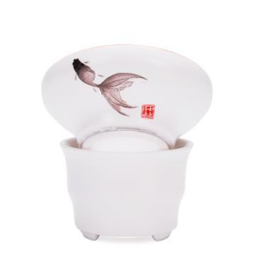 268043b Ситечко МАТОВЫЙ ФАРФОР "Хоровод рыбок" с нейлон.фильтром h=6,3см, d=7,9см, фарфор мат.белый