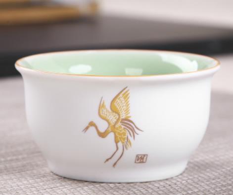 268082.3 Пиала ЖУРАВЛИ "Прогулка в облаках", h=3,3см, d=6,3см, 50мл, фарфор мат.белый