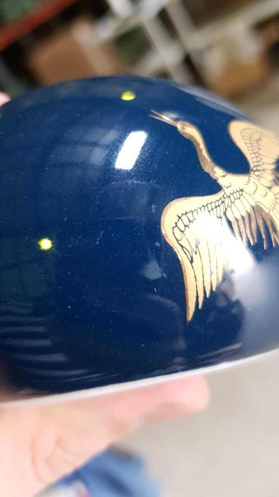 Фарфор с цветной глазурью. Слив в виде полусферы "Птичья клетка"